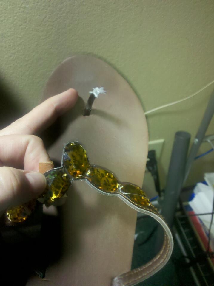 So, today I had a shopping bender trip all planned out (bender is when you are visiting multiple stores in one trip) and after leaving my first store, Hyvee, I stopped in at Pump N Pantry to grab a drink. When I got back in to the truck... my FLIP FLOP snapped!!! Yes, they were only $5 but they were my favorite AND I still had 3 more stores to go! Here is a pic of my favorite, now unwearable, flip flops.